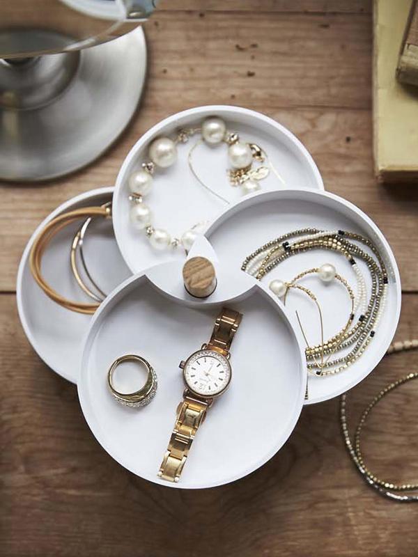 Goodnight Macaroon ‘Circle’ 4 Tiers Jewelry Holder Jewelry Holder with 4 Layers OrganiZe all kinds of jewelry Material: Plastic Measurements: 10cm diameter, Height 15.4cm, Each layer 2.2cm Height